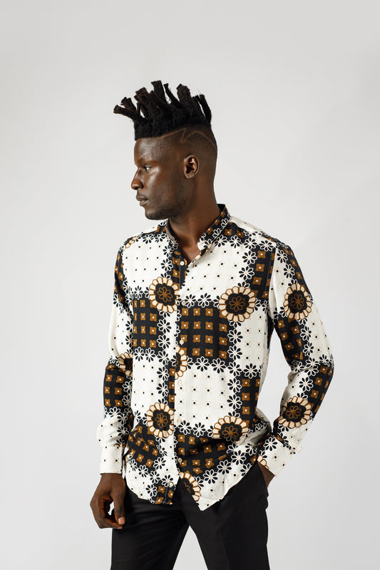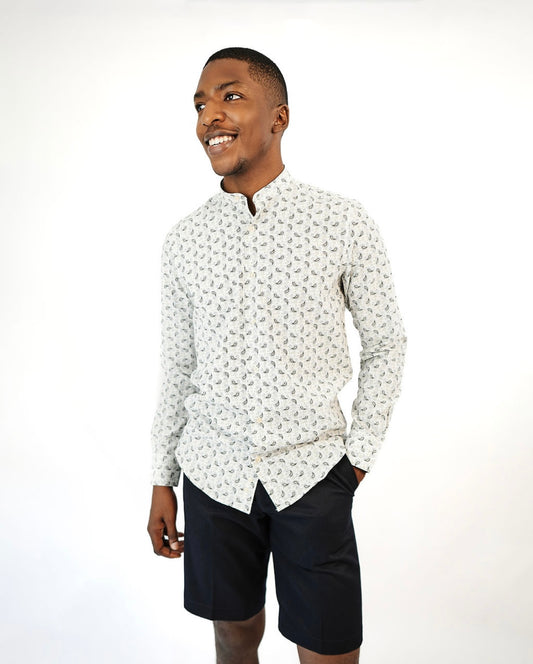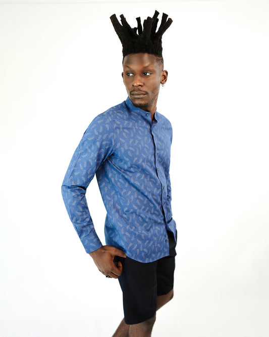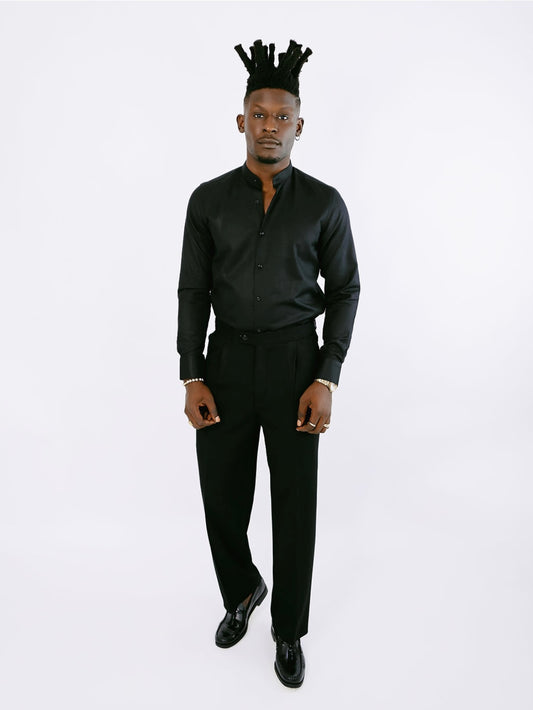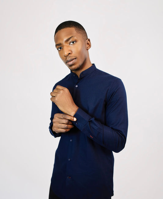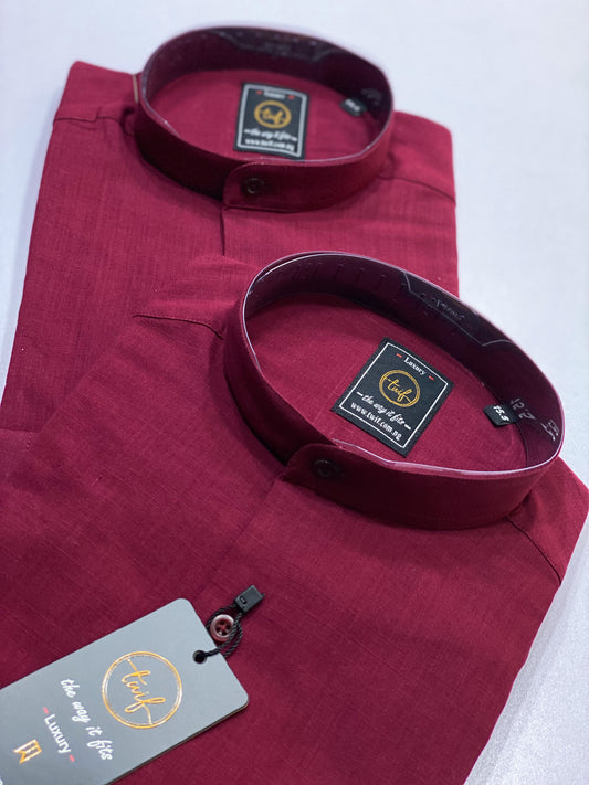 Sold outWine Long Sleeve Bishop Collar Shirt