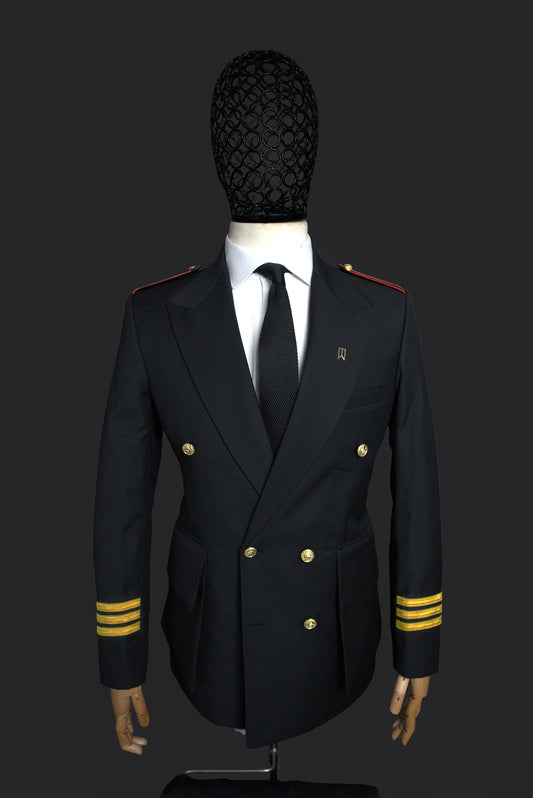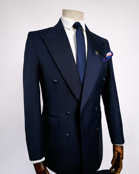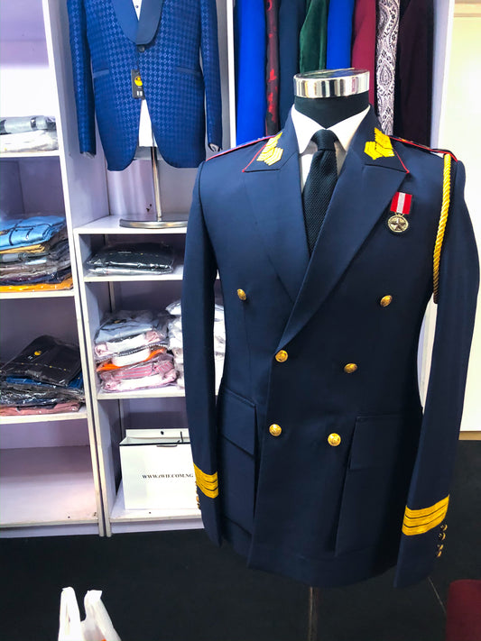 Navy Blue Double Breasted Military Suit with Pant Fabric: Cashmere Wool