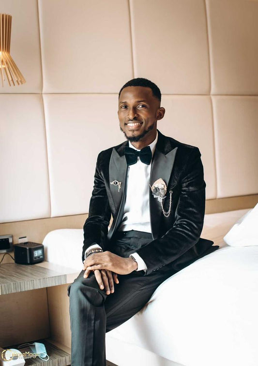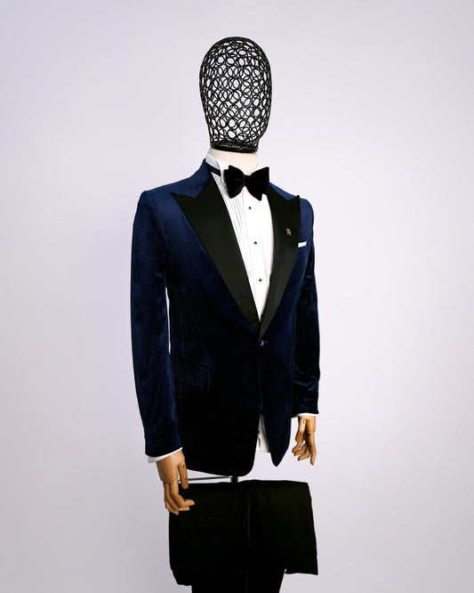 Navy Blue Velvet Peak Lapel Two Piece Tuxedo