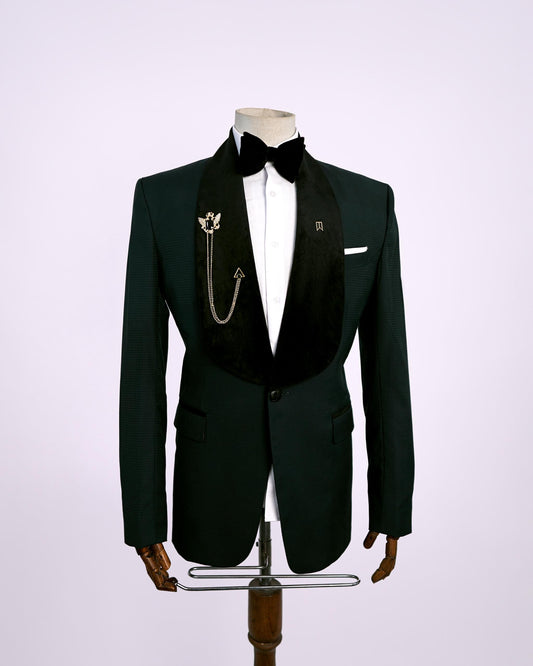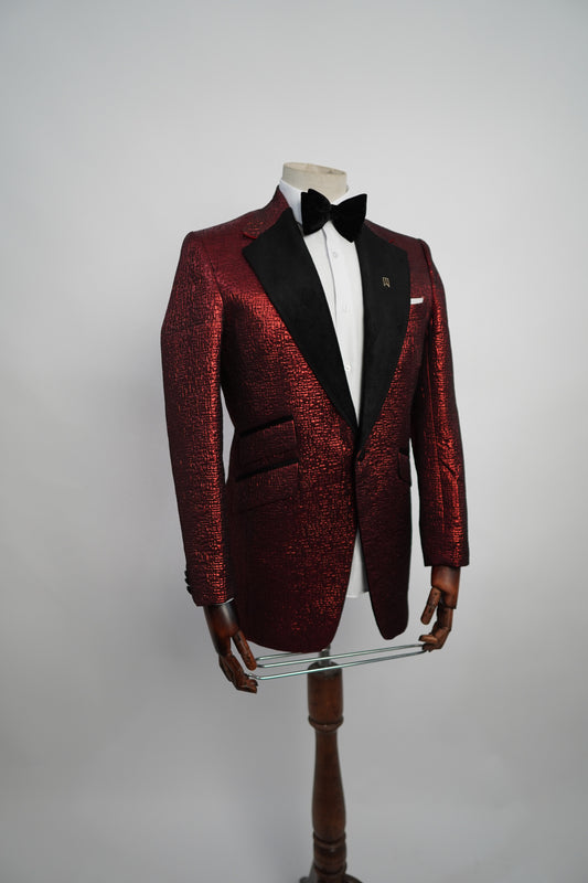 Jacquard with Navy Blue Satin Tuxedo 2pc Suit