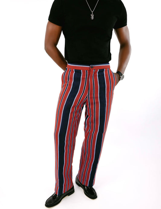 Navy Blue and Red Stripe Asoke Pant