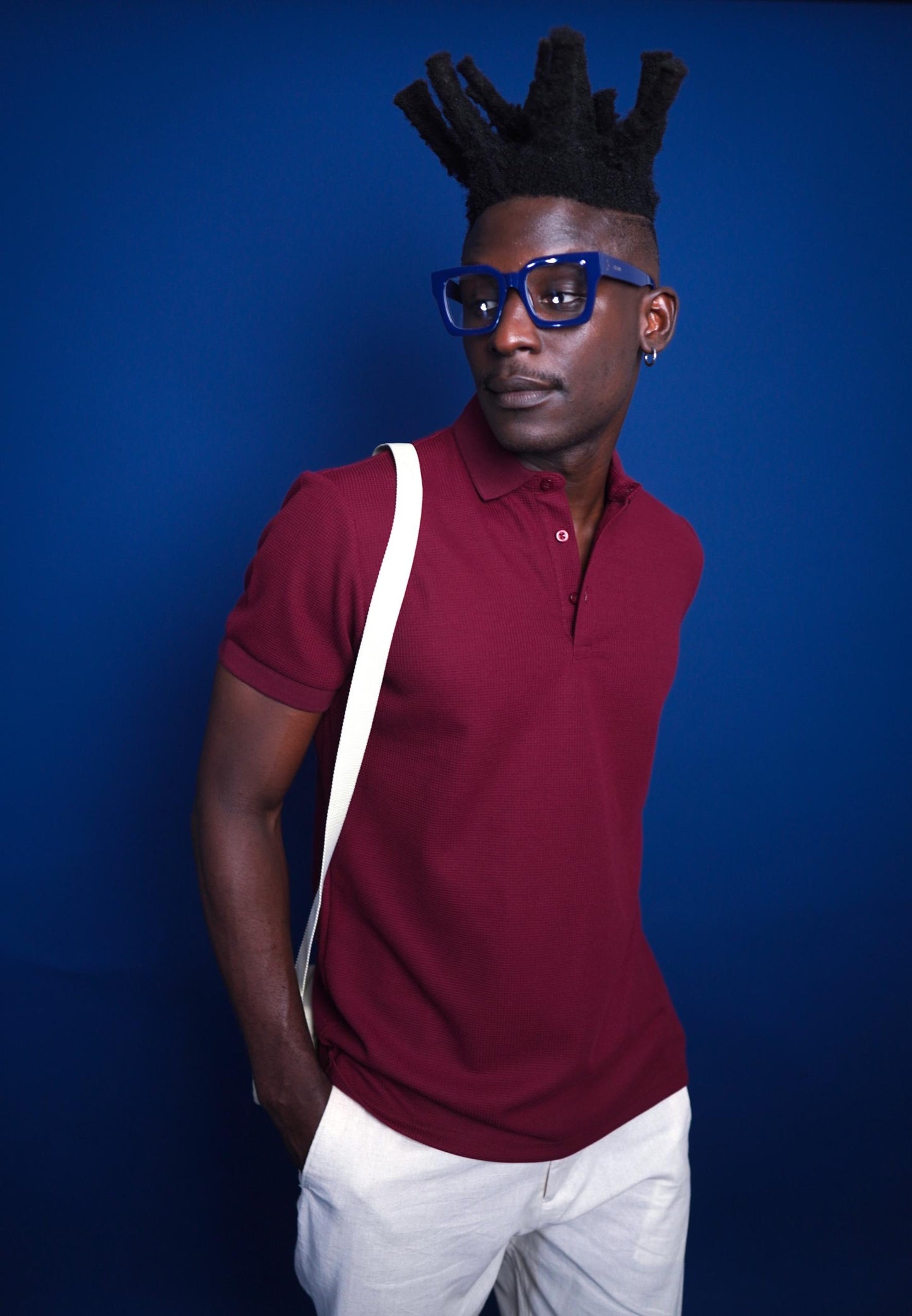 Wine Knitted Polo with Buttons